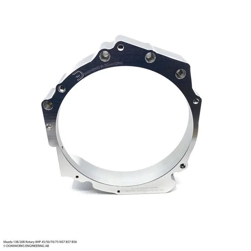 Adapter kit to fit a BMW 8HP gearbox to a Mazda 13B/20B engine.